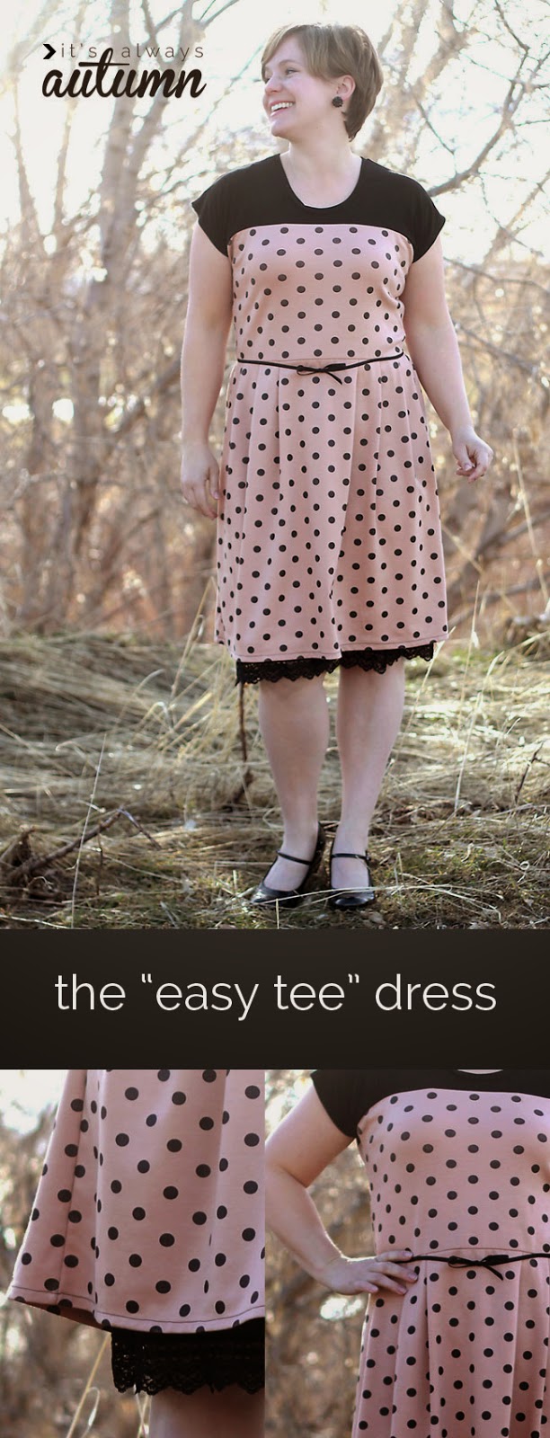 What a cute dress to make in no time. The neckline is already there ,the sleeves are part of the bodice part, there are no zippers or buttons. Nothing gets easier than this. Rush over to Its Always Autumn to download the free sewing tutorial for Easy Tee-Dress.